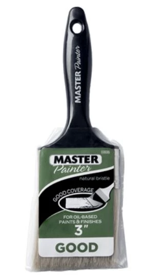 Master painter select, 3 inches, china bristle paint brush, 100% china bristle, plastic handle, for use with oil base paints & finishes.
