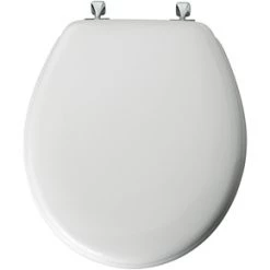 This molded wood seat provides durability and stability. The stylish metal hinges are long-lasting. With the STA-TITE® Seat Fastening System™, the seat does not shift around and stays firmly attached to the toilet.