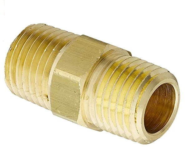 Two pack of 1/4″ MNPT brass hex nipple fittings are used to assemble new hoses or replace old fittings on hoses.