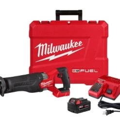 Our M18 FUELâ„¢ SAWZALL Recip Saw 1 Battery Kit is the next generation of legendary performance and durability, designed for the toughest applications on the job site. The MILWAUKEE M18 FUEL SAWZALL is the fastest cutting reciprocating saw in its class and leverages a POWERSTATE Brushless Motor to provide you with 3,000 SPM and a 1-1/4″ stroke length for faster material removal. REDLINK PLUS electronics ensure maximum performance under stress as well as protection from overloading, overheating, and over-discharging. The included M18 REDLITHIUM XC5.0 Battery Pack delivers you up to 2.5X runtime and provides more work per charge and more work over the life of the pack than competitive batteries. The M18 FUEL SAWZALL Recip Saw is designed to perform in the most demanding applications and is our most durable cordless reciprocating saw yet. A wear-resistant blade change, anti-corrosion blade clamp, and metal reinforced battery rails provide longer component life and stand up to the toughest jobsite conditions. The M18 FUEL SAWZALL Recip Saw is lighter weight than the previous generation and features an adjustable shoe, integrated LED light, and a hanging hook for convenient storage on the job.