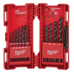 The 15-Piece Thunderbolt® Black Oxide Drill Bit Set offers convenience and heavy-duty performance on the jobsite. Milwaukee® Thunderbolt Black Oxide drill bits are designed for extreme durability and long life. The Thunderbolt web features a thicker core than a standard drill bit to provide ultimate strength and protect against side-load breakage. A specially designed parabolic flute form clears chips fast, while the 3-Flat Secure-Grip™ shank holds the bit firmly in thedrill chuck. The 135° split point tip delivers a precision start and prevents walking for fast, accurate holes. Effective for drilling on curved surfaces, Milwaukee Thunderbolt Black Oxide bits require less effort to drill through metal, wood and PVC, and are highly recommended for use with portable drills.