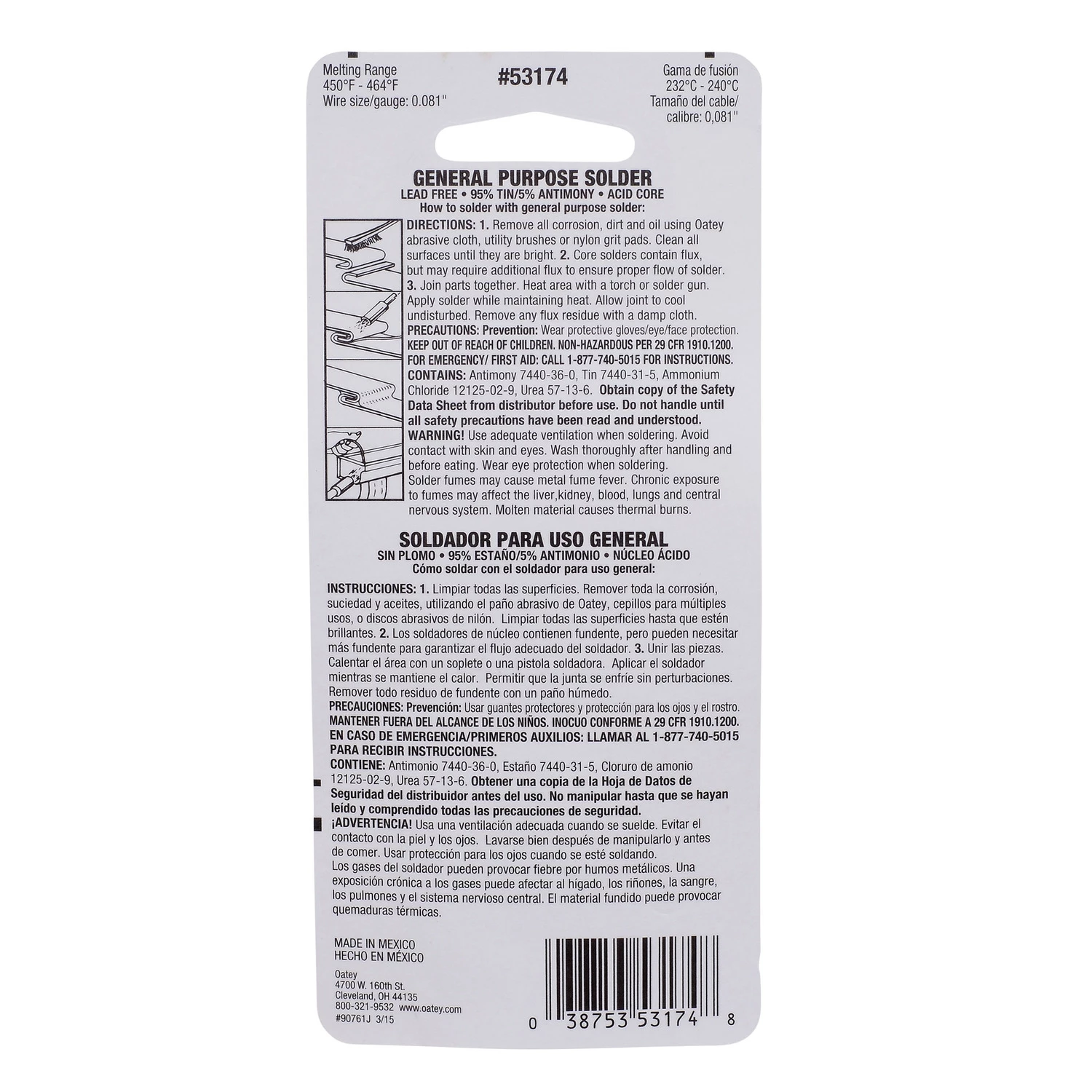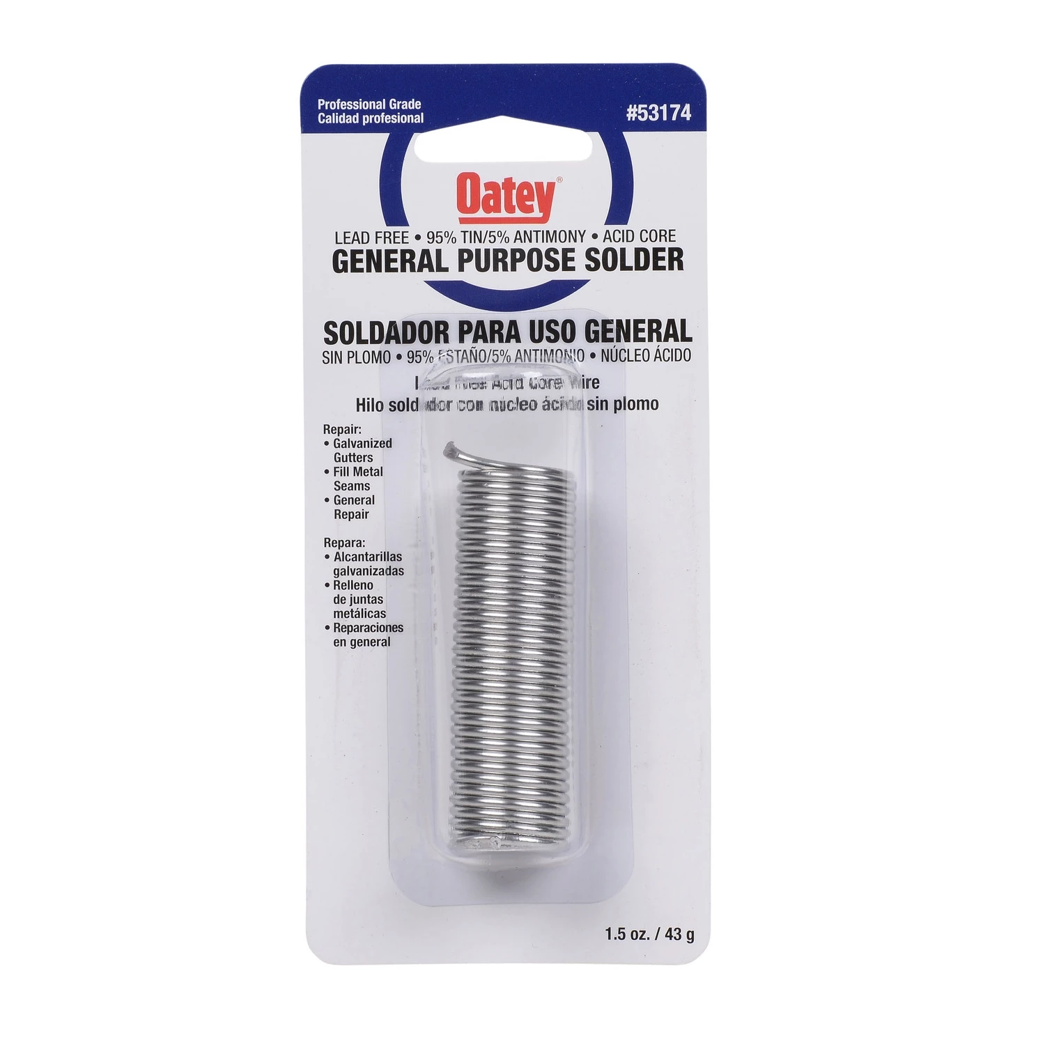Oatey® 95/5 Lead Free Acid Core Wire Solder is a tin antimony wire solder with an acid flux core designed for sheet metal and radiator work.