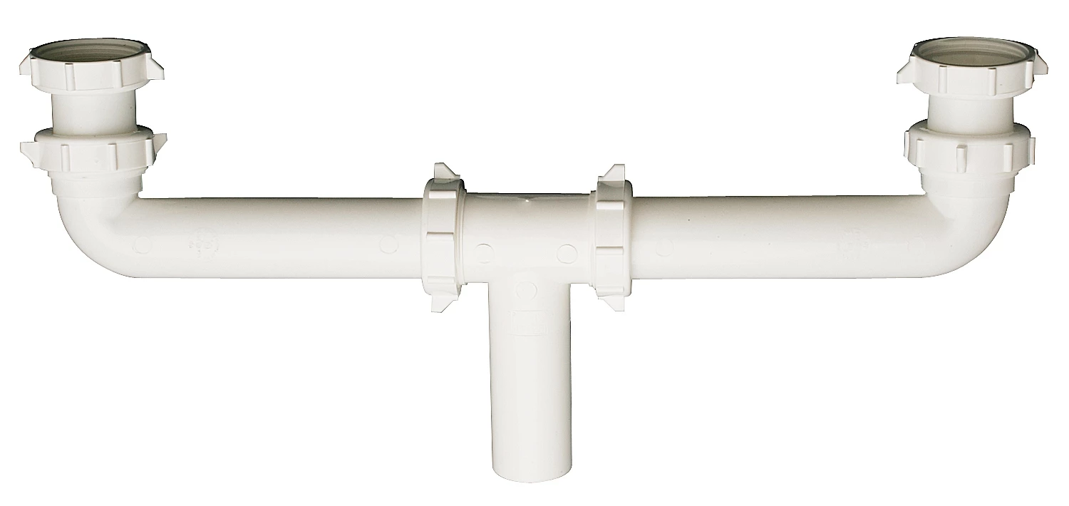 White polypropylene 16” long center outlet continuous waste with slip joint or direct connect baffle tee