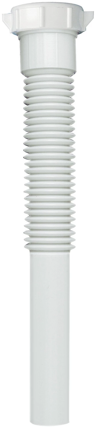 White polypropylene flex ‘n fix 9in extension tube for lavatory with slip joint connection, 1 1/4in inlet.