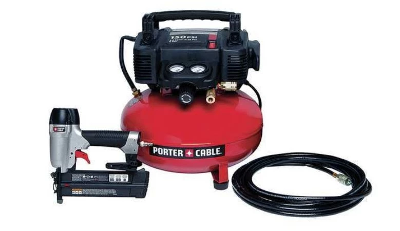 Portable Air Compressor/Nailer Combo Kit, Lubrication Type – Air compressor Oil Free, Item – Air Compressor Air Compressor, Nailer Combo Kit, HP – Air Compressor 0.8 hp, Input Voltage – Air Compressor 120V AC, Tank Style – Air Compressor Pancake, Tank Size – Air Compressor 6.0 gal, Free Air CFM @ 90 PSI – Air Compressor 1.00, Weight – Air Compressor 30 lb, Max. Pressure – Air Compressor 150 psi