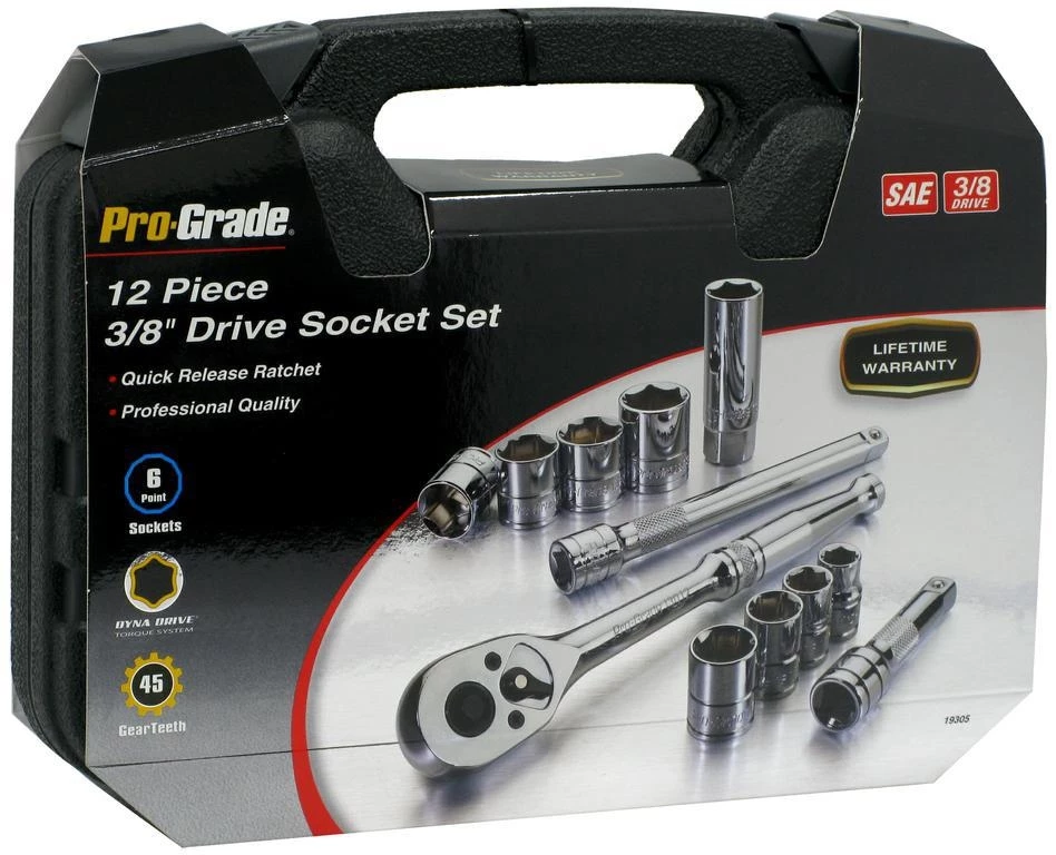 • 3/8″ Dr. 6Pt. SAE Sockets: 3/8, 7/16, 1/2, 9/16, 5/8, 11/16, 3/4, 13/16
