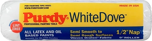 Purdy’s most popular roller covers; use with all paints and exterior stains, especially where a smooth, lint free finish is desired. White Dove series features a high density woven cover, made of Dralon®, a derivative of nylon, which enables the paint to flow freely into and out of the cover for easy rolling and a high quality finish. White Dove covers feature thousands of miniature flagged filaments so paint leaves from thousands of tiny surfaces for a smooth, virtually perfect finish. The high density acrylic fiber is also capable of carrying large quantity of paint, leading to improved efficiency and productivity.