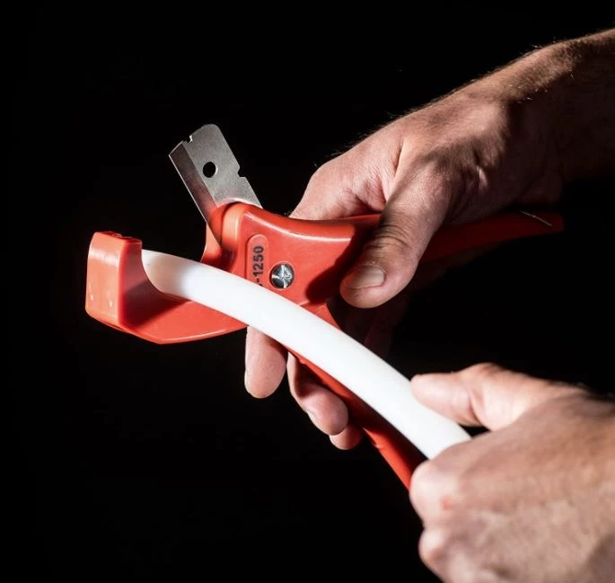 Cuts plastic (PVC, CPVC, PP, PEX, PE)