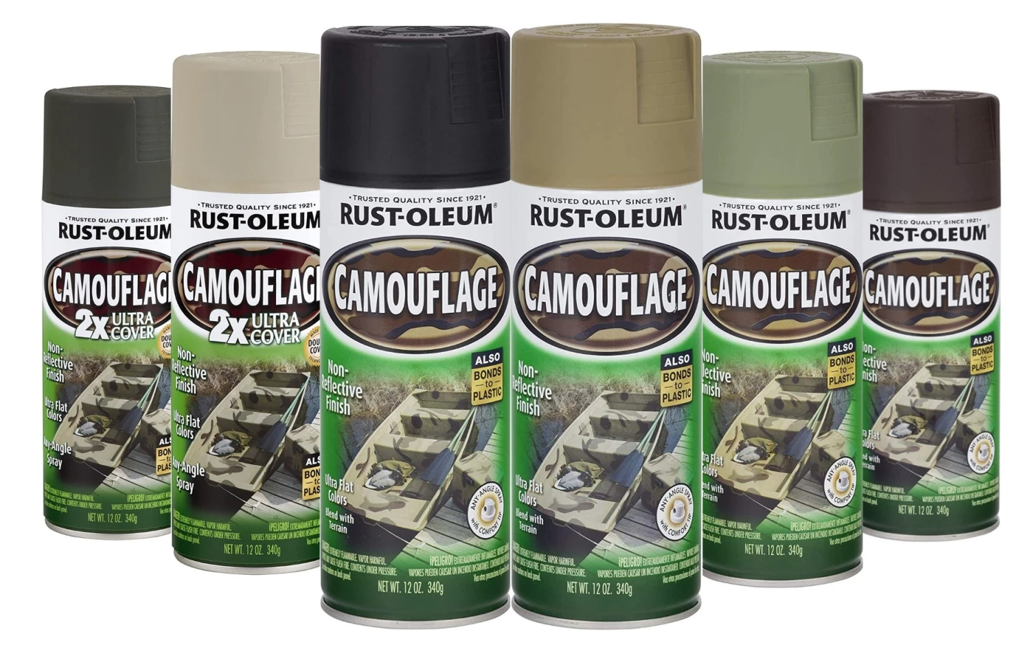 Rust-Oleum® Specialty Camouflage Spray provides a non-reflective, ultra-flat finish for maximum hiding. Applies to metal, wood, plaster or masonry. Offers long-lasting protection when applied on top of primer.