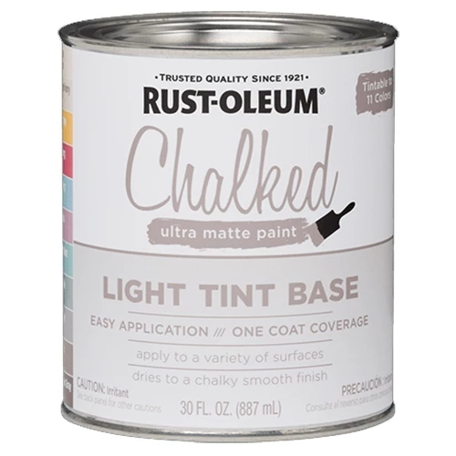 Rust-Oleum® Chalked Ultra Matte Paint creates an ultra-matte finish with superior adhesion and coverage. It rejuvenates furniture and home décor with timeless elegance. It can be painted or distressed, giving any project a one of a kind look with a vintage feel. Tint bases can be tinted up to 25 colors.