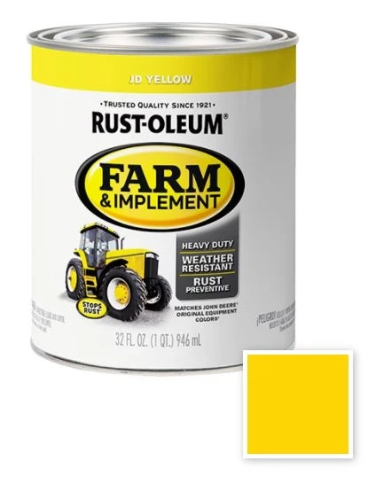 Rust-Oleum® Specialty Farm & Implement provides superior rust protection for tractors, trailers, lawn mowers and other farm implements. Rust-Oleum® Specialty Farm & Implement offers excellent coverage, chip resistance and color retention. This complete assortment matches original equipment colors. Apply to metal or wood.Â