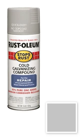 Instantly galvanize metal surfaces to protect them from corrosion with Rust-Oleum® Stops Rust® Cold Galvanizing Compound Spray. This 93% pure zinc coating applies a galvanized film with cathodic protection, which resists rusts, scratches and chips.