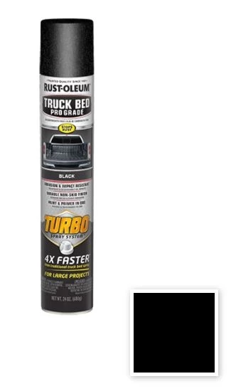 Rust-Oleum® Truck Bed Pro Grade with Turbo Spray System® includes a high output tip that sprays up to 10 inches wide to complete projects in a fraction of the time. This professional grade coating provides metal truck beds and surfaces with a textured, non-skid finish offering exceptional chemical and abrasion resistance.