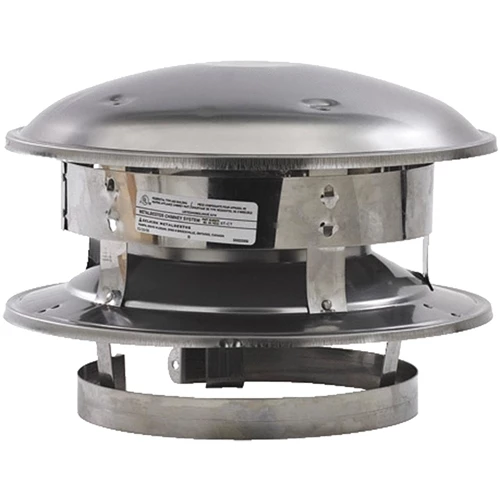 Designed with a dome to exclude rain and leaves and a lower skirt to deflect wind for proper chimney draft. The 3 legs slide down over the outside of the chimney pipe. A cinch band is then positioned over the legs and tightened to hold the top firmly in place. Cap can easily be removed for cleaning.