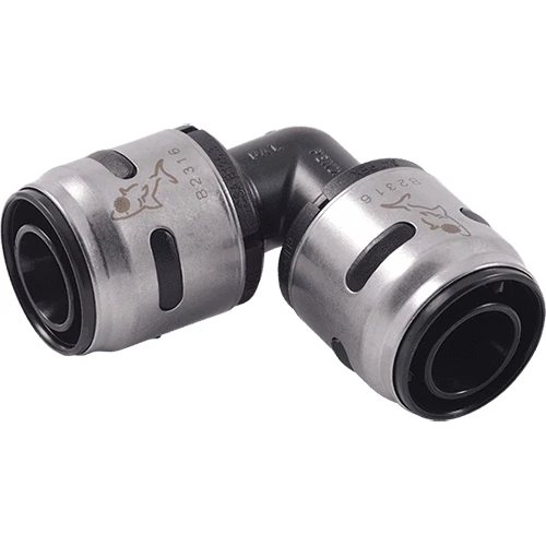 Push-to-connect PEX fitting for faster installation compared to traditional PEX rough-in plumbing methods. Requires no special tools, crimp / clamp / PEX rings, increasing productivity. Securely and permanently make a 90° connection between two pieces of PEX pipe. Can be rotated after connected, and is ideal for working in tight spaces. Green visual indicator lets you know when PEX tubing is inserted to the proper depth and reduces the risk of installation errors.