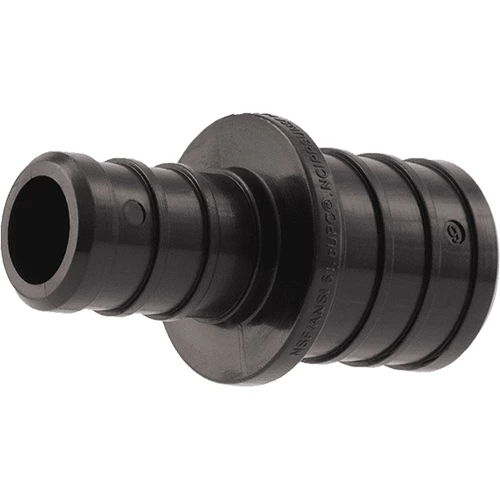 Connect two pieces of different-sized PEX pipe together using crimp or clamp rings. Corrosion resistant fitting certified for use in potable water and hydronic heating system applications.