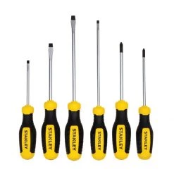 Ensure the tool you need is at your fingertips with the STANLEY® 6 pc. Screwdriver Set. Featuring Phillips and slotted tip types to accommodate a range of fastening needs, each screwdriver has a molded, bi-material handle with 3 grip zones to accommodate precision, torque, and speed applications. The tip type is conveniently identified on the handle so you can grab it and get to work with tools you can depend on.
