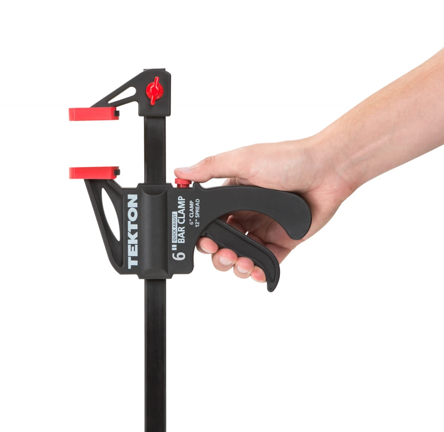 Squeeze the trigger of the TEKTON Ratchet Bar Clamp / Spreader and apply precise, consistent pressure to your gluing or assembly project.
