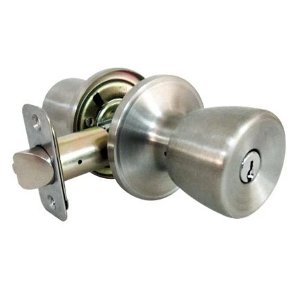 Stainless steel medium tulip style knob lockset for exterior entry door applications.