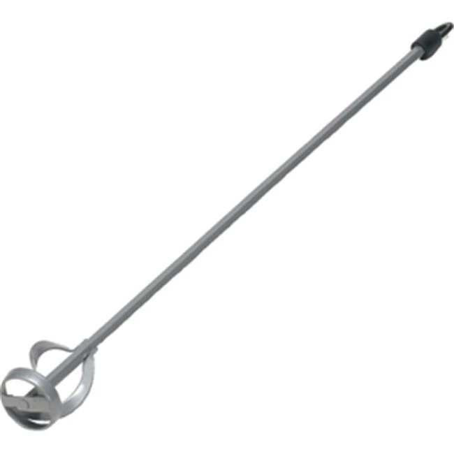 Mix thicker paints and epoxy coatings efficiently with this heavy-duty stirring attachment. Attaches to a drill with 3/8″ hex steel shank. Shank length is 19″. Mixer end is designed to fit inside the pour hole on a 5 gallon pail.