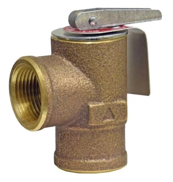 This 3/4 inch pressure safety relief valve is used in commercial and industrial applications for low pressure, steam heating boilers and process equipment. It consists of a bronze body construction with NPT threaded female inlet and threaded female outlet (drain) connection, stainless steel spring, a top-guided stem, and a non-stick Teflon® disc-to-metal seating. The pressure relief is set at 30 psi (2.1 bar).