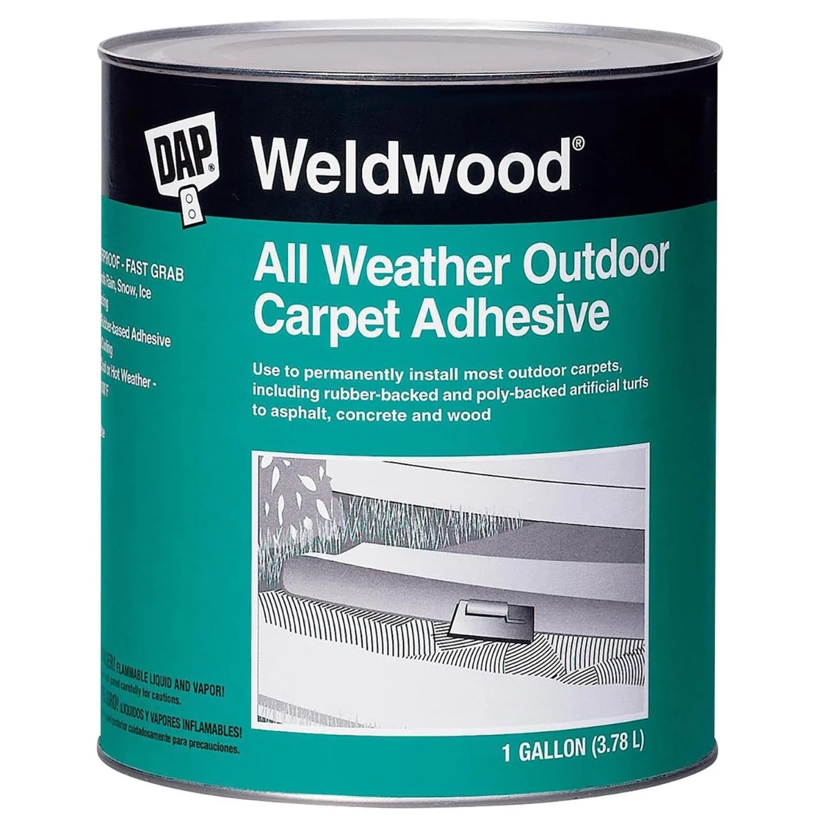 High strength, trowel grade, solvent-based adhesive for the installation of most outdoor carpets and artificial turfs. Weatherproof formula withstands rain, snow, ice and freezing.