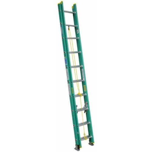 The D5920-2 20ft fiberglass extension ladders feature a rounded rail for improved ergonomics while climbing and carrying. The non-conductive fiberglass rails are interlocking and the exclusive ALFLO® rung joint means TWIST-PROOF® performance every time. The TRACTION-TRED® D rungs are slip resistant. These extension ladders are lightweight for transporting and maneuvering yet still have a duty rating of 225 pounds.