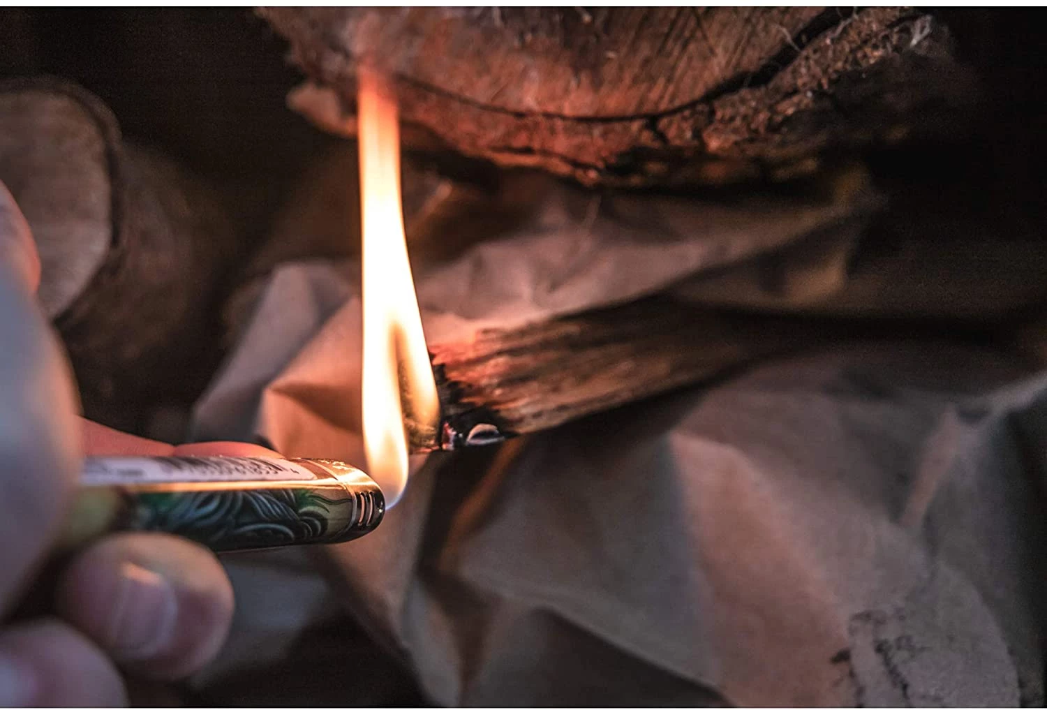 Fire starters color box size 10 pounds 100% All natural pine wood hand split approximately 8 feet length. Safe, simple, and mess-free way to start any fire. Use in fireplaces, pellet fuel stoves, and barbecues. Place two (2) sticks in fire area and light with match.