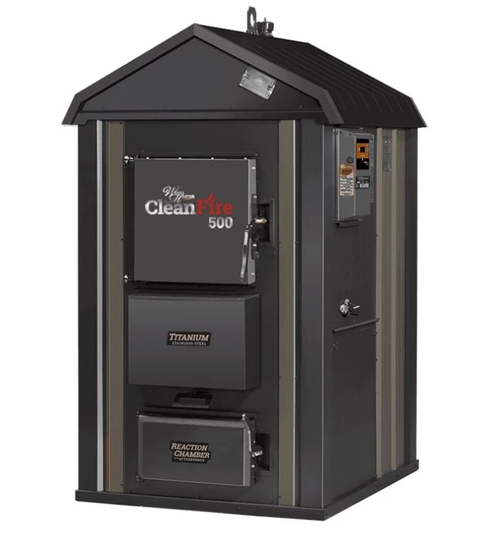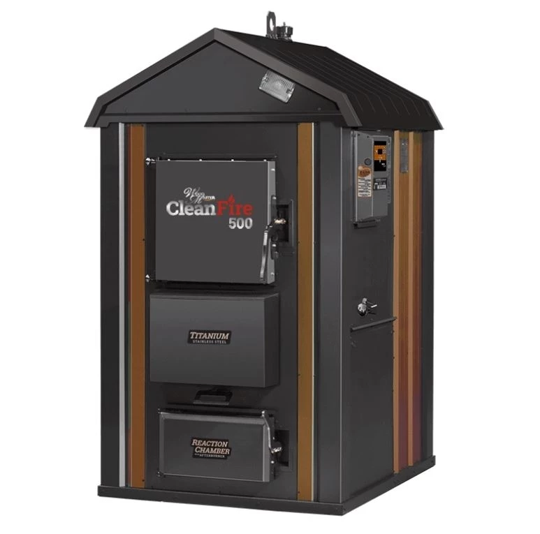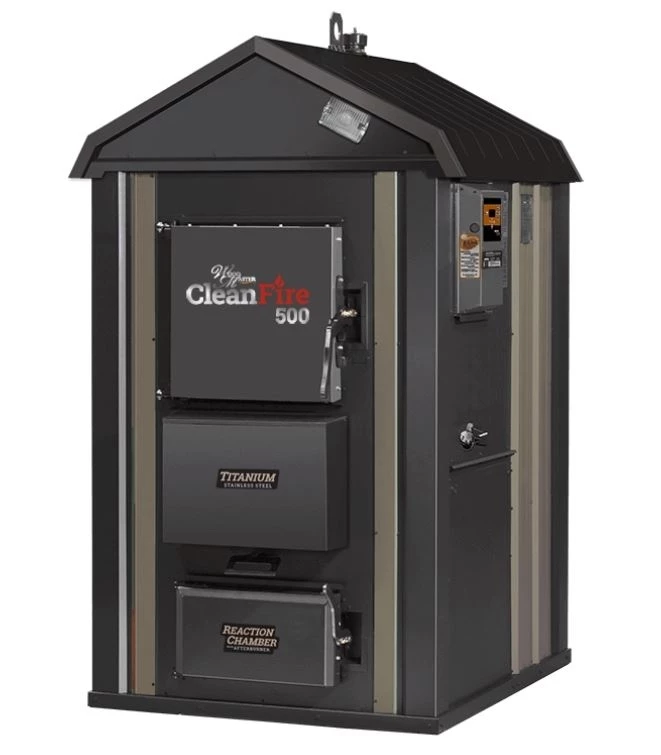 The CleanFire 500 is currently the most popular size in the CleanFire line-up and uses up to 60 percent less wood compared to traditional and other methods of wood heating. CleanFire furnaces are engineered to minimize heat loss, from the construction of the firebox door, panels and pump access area to the airtight, waterproof sprayed-on urethane foam insulation. The larger firebox allows for longer burn times, saving you even more time.