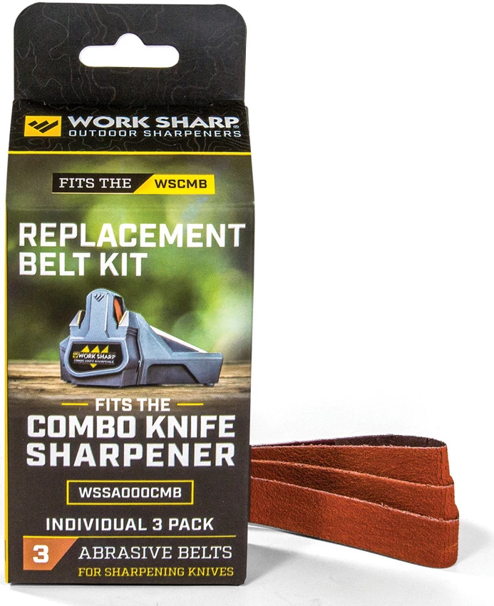 The Work Sharp® Replacement Belt Kit contains 3 replacement abrasive belts for the Work Sharp Combo Knife Sharpener model WSCMB (not included). The belts in this kit measure 10L x 1/2W and do not fit other Work Sharp products.