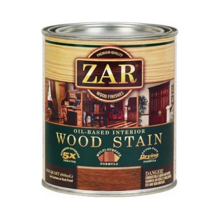Wood stain Zar Wood Finishing series Stains and seals with controlled penetration Wipes on easily with a cloth to produce a uniform color Leaves no lap marks or streaks Can be applied to metal or previously painted or varnished surfaces to achieve a wood grain effect Ideal for fiberglass steel or Masonite doors